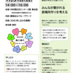 2022年7月10日 / 最終更新日時 : 2022年7月10日 nerimark ワークショップ みんなが繋がれる居場所づくりを考える 居場所ぬくぬく×ユニラボねりま 日時:7月31日(日)14:00~16:00 会場:中村橋区民センター2階 集会室 内容:講演会&ワークショップ テーマ:障害のある人も無い人も、みんなが繋がれる居場所づくりを考える 障害 […]